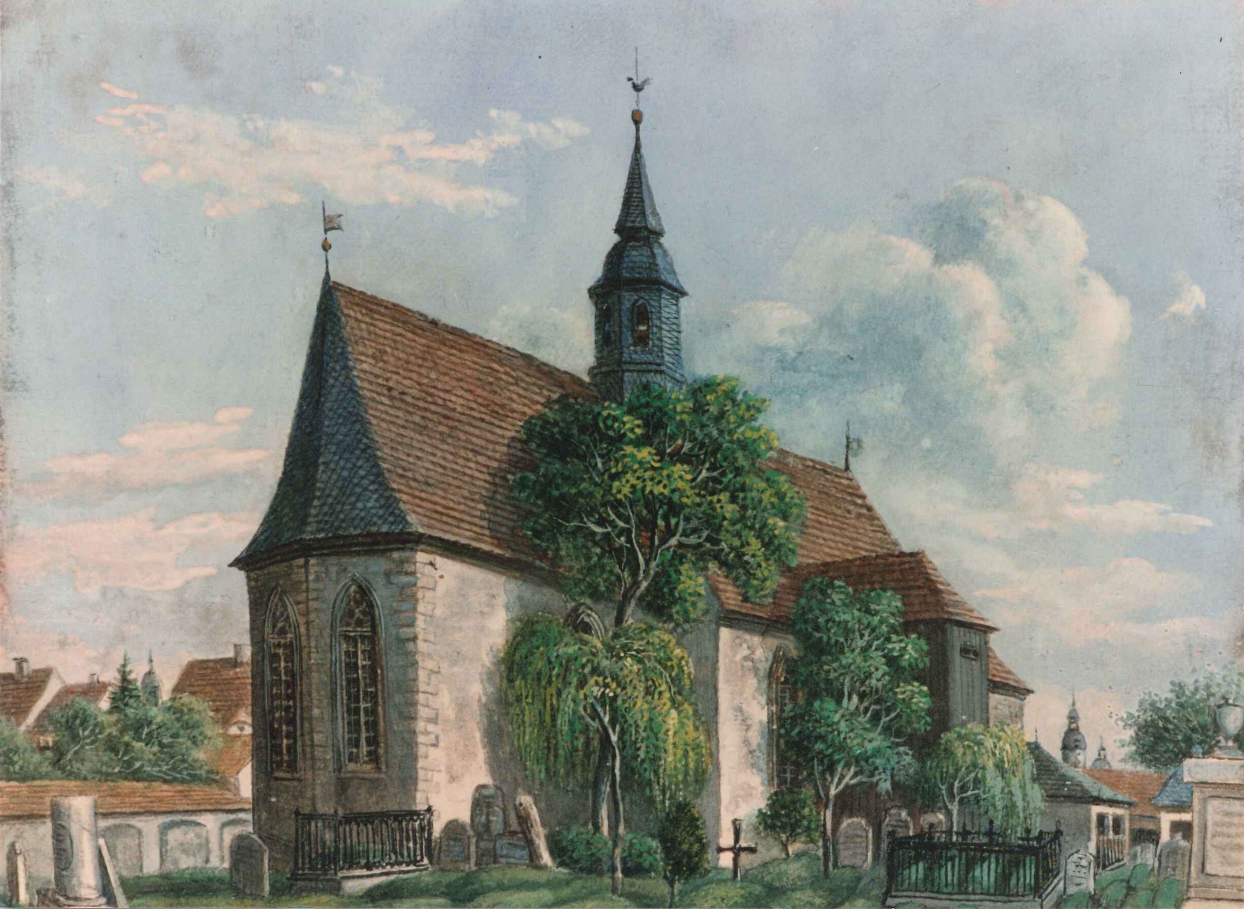 wird die „sehr schöne Kirche“ im Schmalkaldischen Krieg aus Sicherheitsgründen von der Stadt selbst abgebrochen.